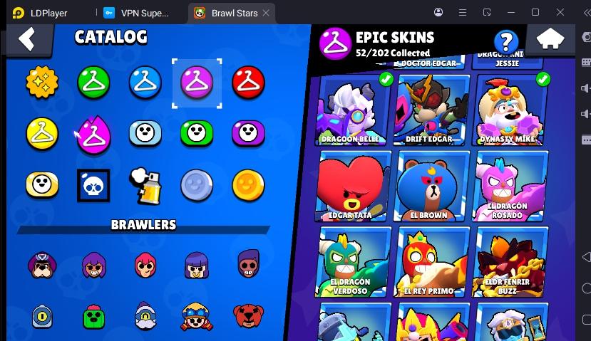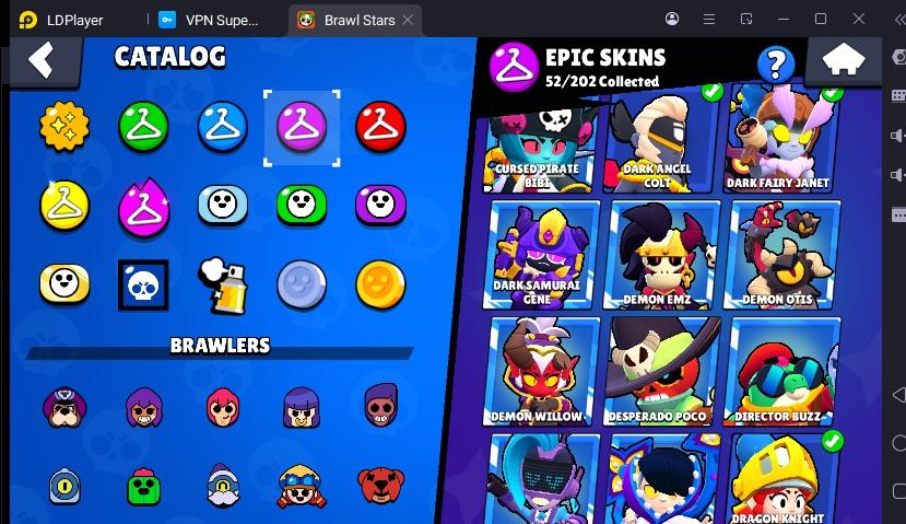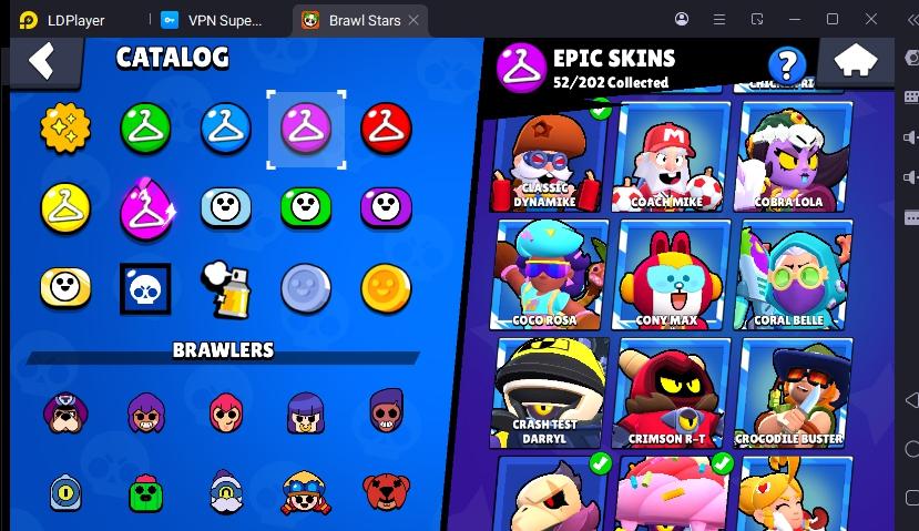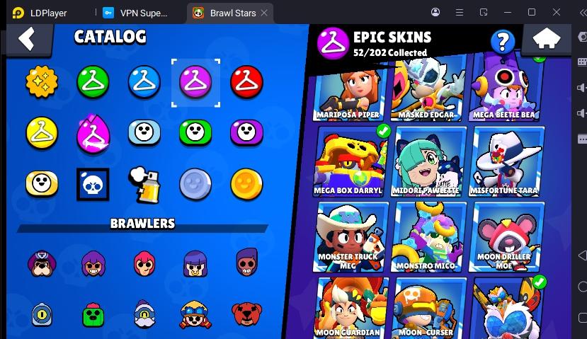 172 SKINS RONIN RUFFS 48.374 TROPHIES 90 BRAWLERS 15 HYPERCHARGED 20 MAX BRAWLERS GROUCH MICO ! MKG0644