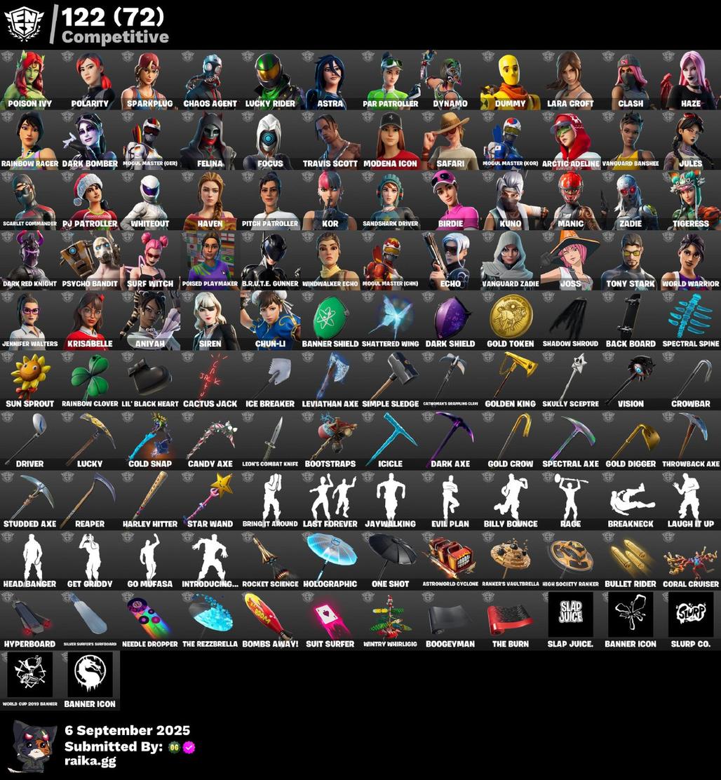 272 SKINS | RUE | TRAVIS SCOTT | LEVIATHAN AXE | 108 SHOP SKINS | 78 SHOP EMOTES | LAUGH IT UP | WORLD WARRIOR GOLD MIDA