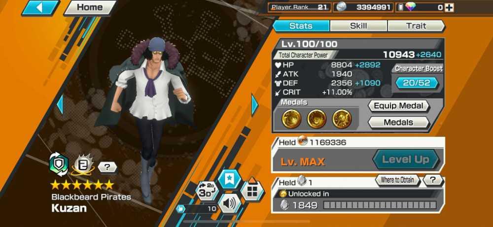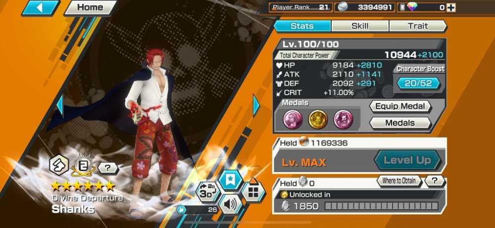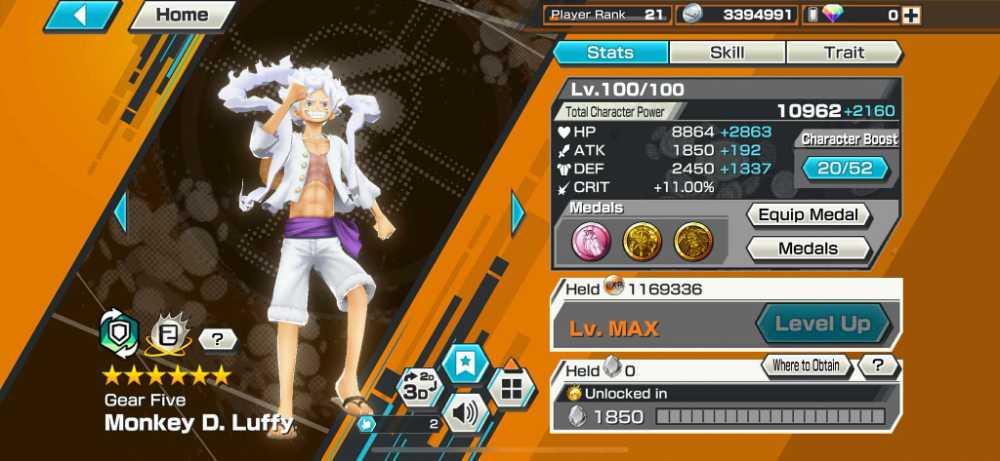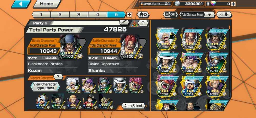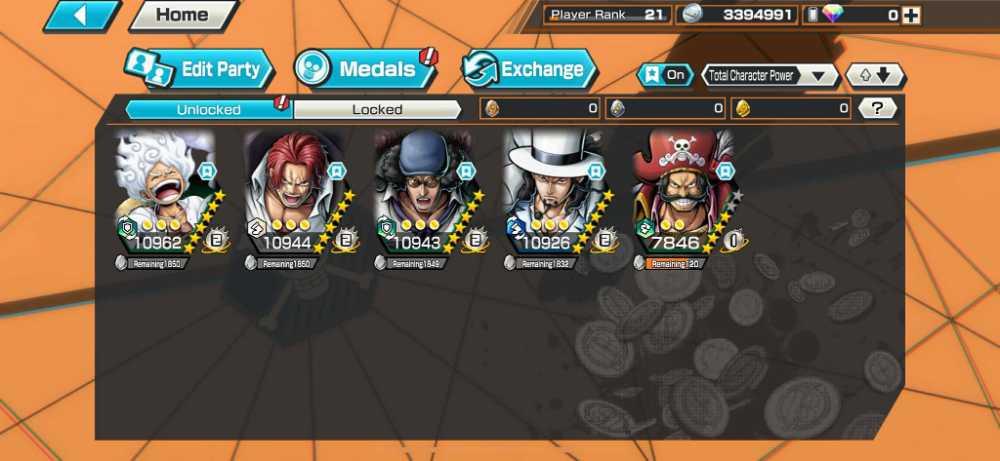 [2974] [IOS+ANDROID] 5 EX - Shanks Light + Kuzan + Lucci + Roger + Luffy G5 , Support 138 , Good Medal