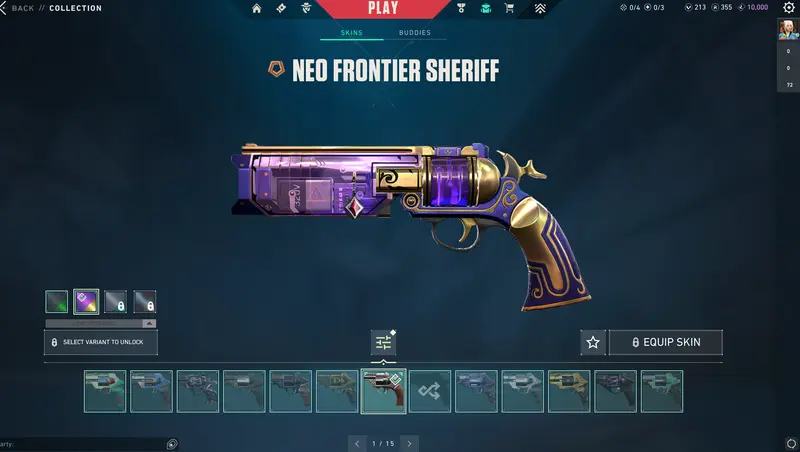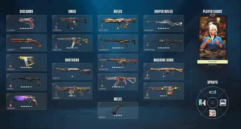 Skins(18 premium skins): Classic: Rgx, Shorty: Oni, Frenzy: Prime, Ghost; Reaver and Sovereign, Sheriff: Reaver and Neo Frontier, Spectre: Prime, Guardian: Reaver, Phantom: Oni, Singularity and Reaver, Vandal: Reaver, Glitchpop and Champions 2023, Marshal: Sovereign, Operator: Reaver and Ion.