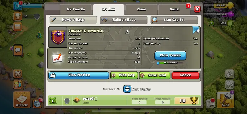 BLACK DIAMOND || LEVEL 28 || Clan Capital 10 Max || Crystal 1 || 422wins || 402Loss || Cheap and Fast Delivery