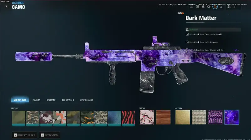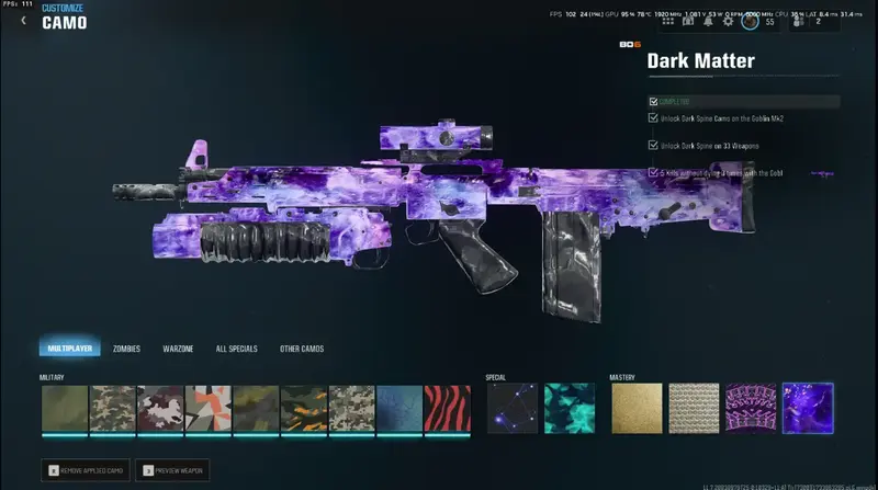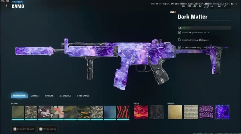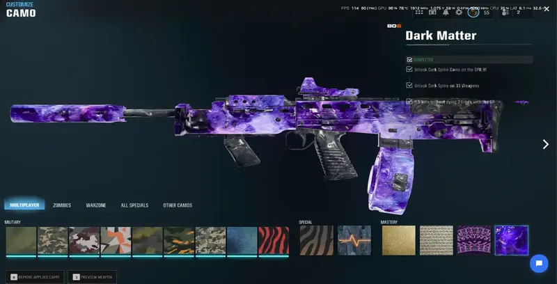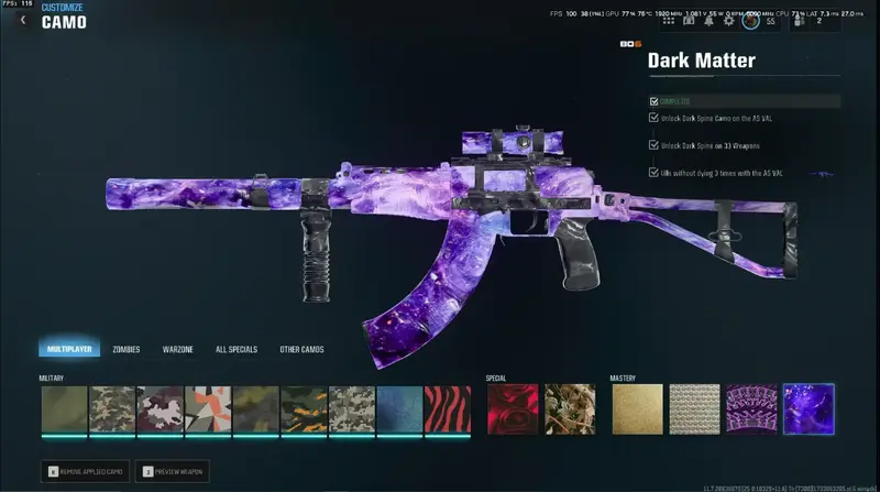 • 33x DARK MATTER Camos – Fully unlocked and ready to flex