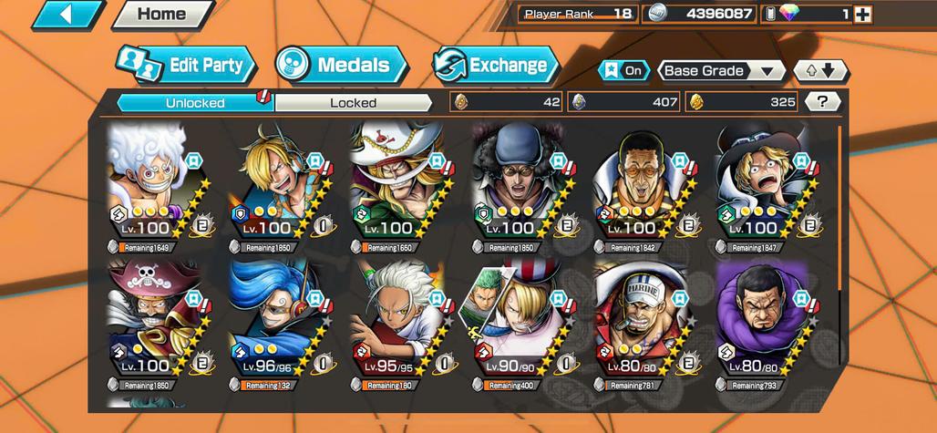 BR605-IOS+Android-6 Ex Meta(Luffy Gear 5 v2 Max+Kizaru Max+Kuzan Max+Sabo Max+Roger v2 Max+Akainu)+Good Medal+Support 142%+Sanji Max+White Beard Max+Kid Max+Rayleigh Max+Young Ray Max+S-Hawk+Issho