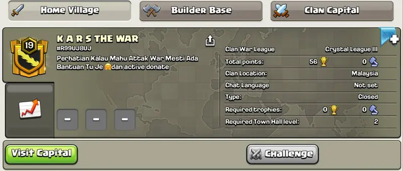 CHEAP CLAN || LEVEL 19 || NAME: K A R S THE WAR || CWL LEAGUE: CRYSTAL 3 || INSTANTLY || AVAILABLE