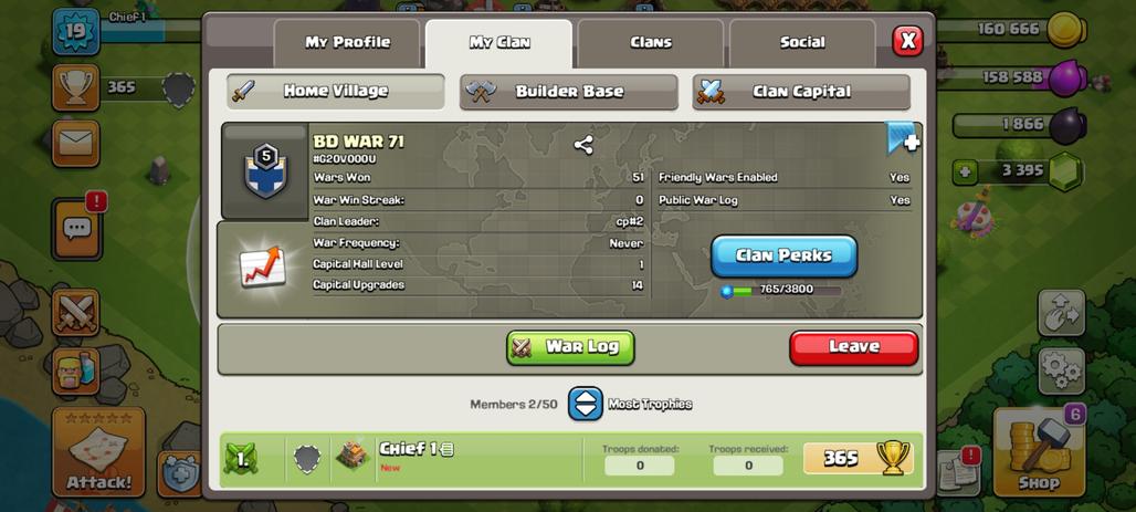 Level 7 clan || clan capital 5 || silver 1 || name - I WILL BE BACK