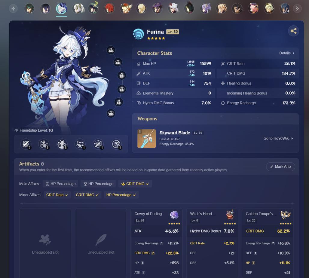 EU | AR 56 | 13 + 3 Leg | Xiao | Klee | Dehya C1 | Yelan | Furina | Nahida | Venti | Arataki Itto | Tighnari | Jean
