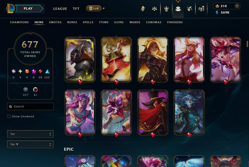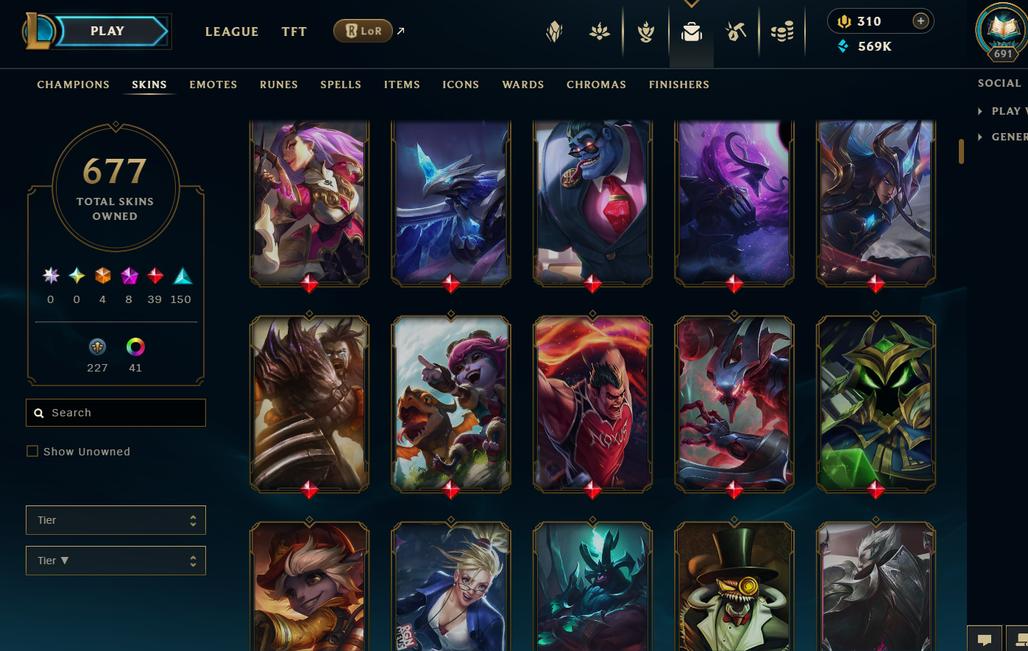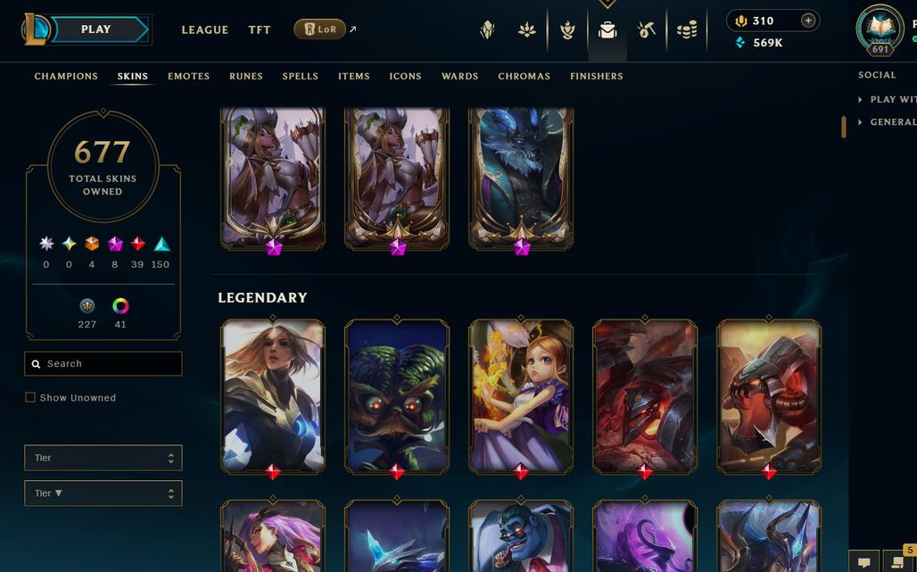 EUW LEVEL 691 - 677 SKINS - FULL CHAMPIONS - SILVER IV - 515927 BE - 310 RP FULL ACCESS - HONOR LEVEL 3