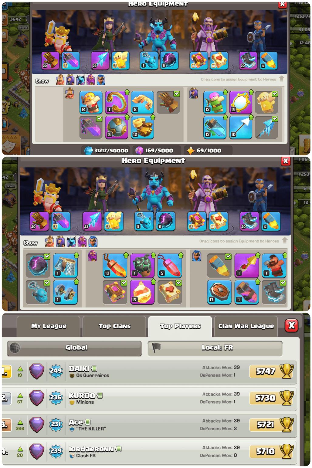 Fa/France Local Th16-[Old 2012-16-19-24Xmas Tree]-Rare Old Obstacles-Hero[67-71-61-65-30]-Gems[12487]-9xEpic Equipment-