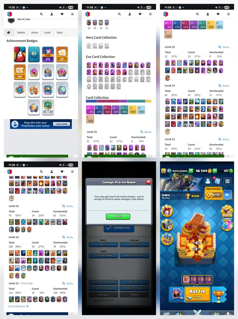 H🔥EXP-61!!18 BEST EVOS🔥15 LEVEL CARDS-21!!14 LVL CARDS-62!!NC FREE!! EXCLUSIVE EMOTES!!BEST CHEAP DEAL