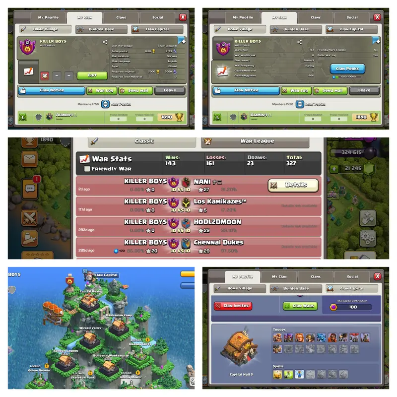 KILLER BOYS | LEVEL-12 | NEGATIVE WAR LOG! CLAN CAPITAL-5! CHEAP DEAL! INSTANT DELIVERY