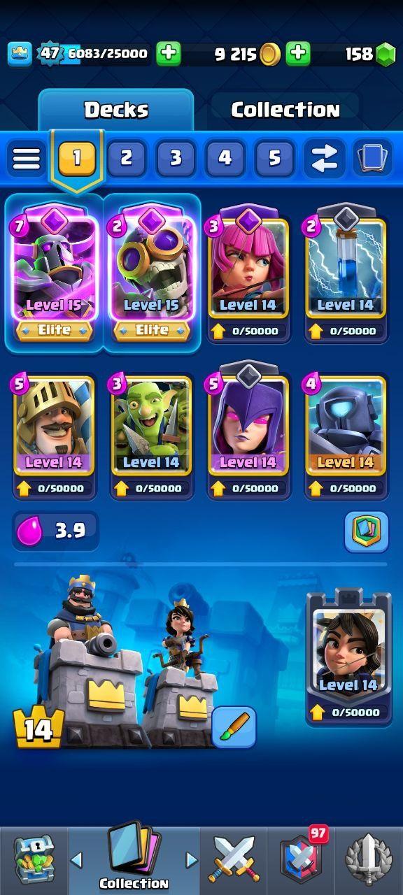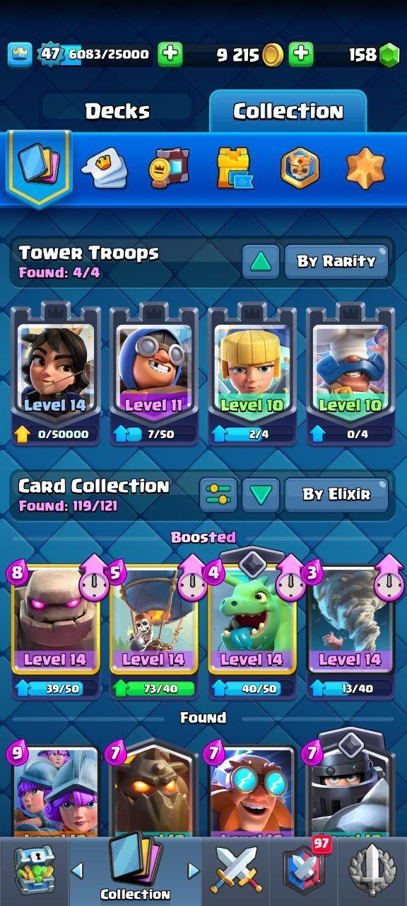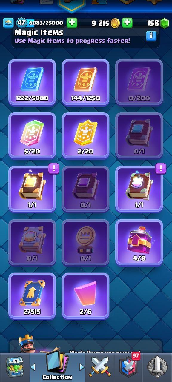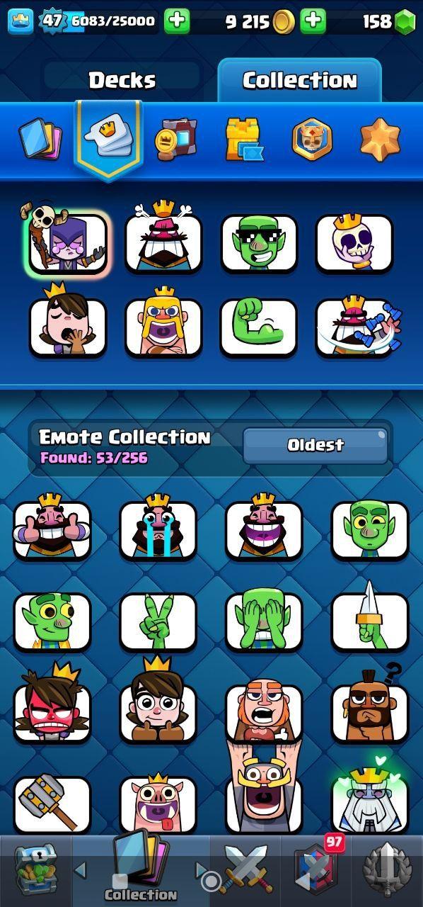 🔥KT14 XP47🔥 | 10 CARDS MAX 2 ELITE | 6 EVOLOTIONS | 53 EMOTES | 9790 TROPHIES | 158 GEMS | INSTANT DELIVERY