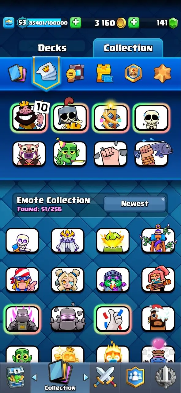 🔥KT14 XP53🔥 | 33 MAX 7 ELITE | 8 EVOLOTIONS | 12600 TROPHY | 51 EMOTE | 6 TOWER SKIN | 141 GEMS | INSTANT DELIVERY