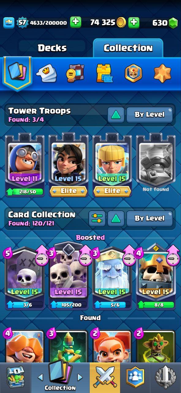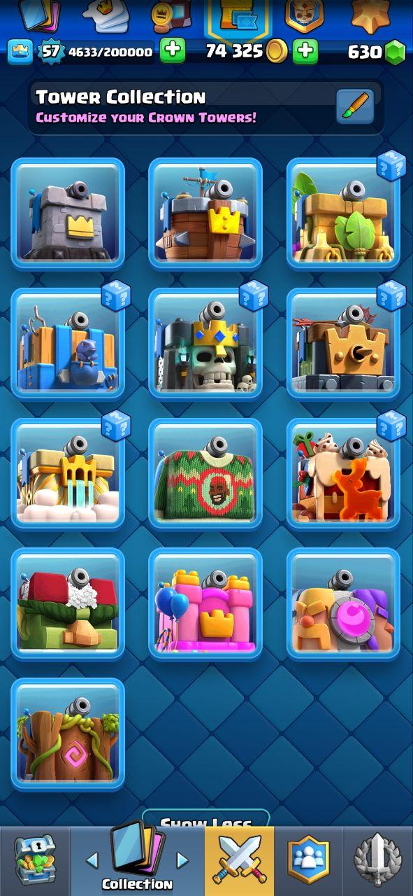 🔥KT15 XP57🔥 | 56 MAX 10 ELITE | 7 EVOLOTIONS | 131 EMOTES | 12150 TROPHY | 12 TOWER SKIN | 630 GEMS | INSTANT DELIVERY