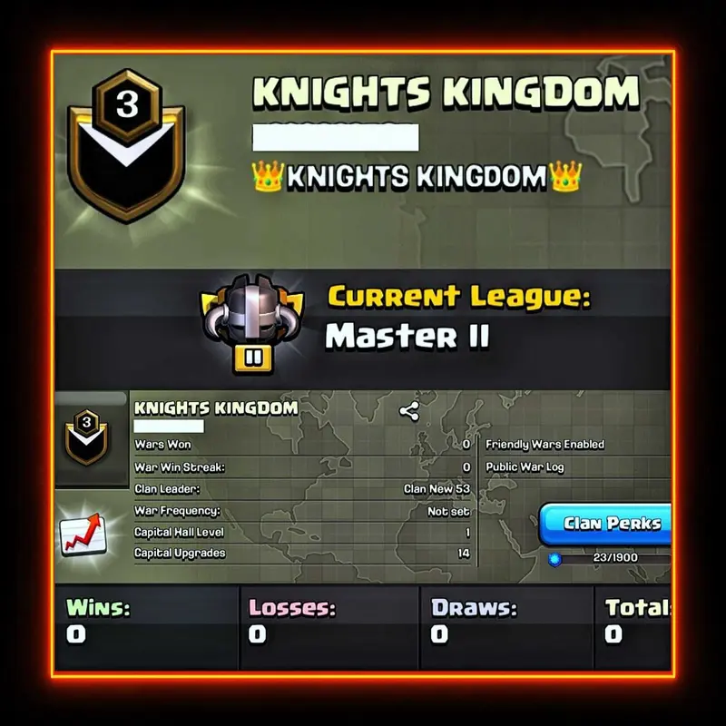 Level 3 clan || master 2 league || win loss 0-0 || name - KNIGHTS KINGDOM