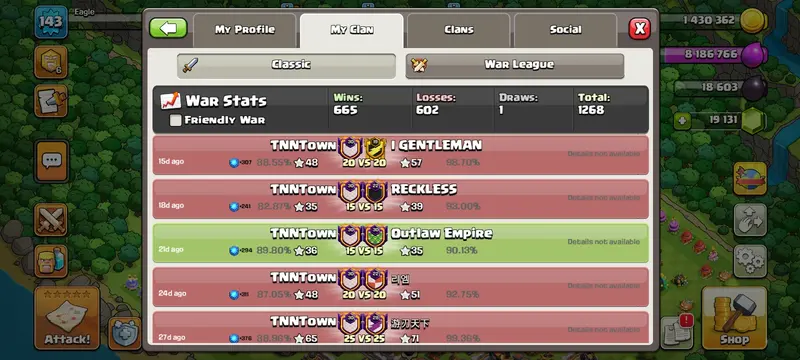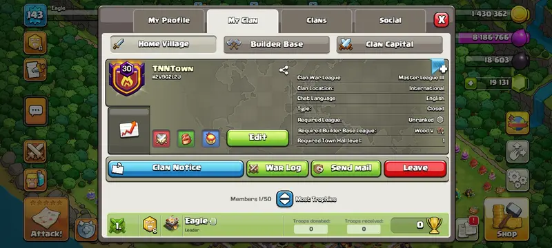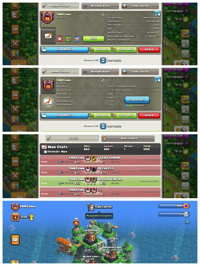 LEVEL 30 || UNIQUE NAME: TNNTown || CWL LEAGUE: MASTER 3 || CAPITAL HALL LEVEL: 10 FULL MAX || GREAT WAR LOG || INSTANT