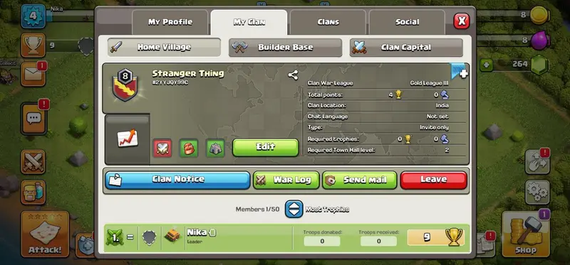 LEVEL-8 !! NAME- STRANGER THING!! CRYSTAL LEAGUE 3!! CAPITAL HALL 5!! VERY GOOD TROOPS! CHEAP RATE!