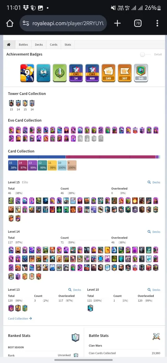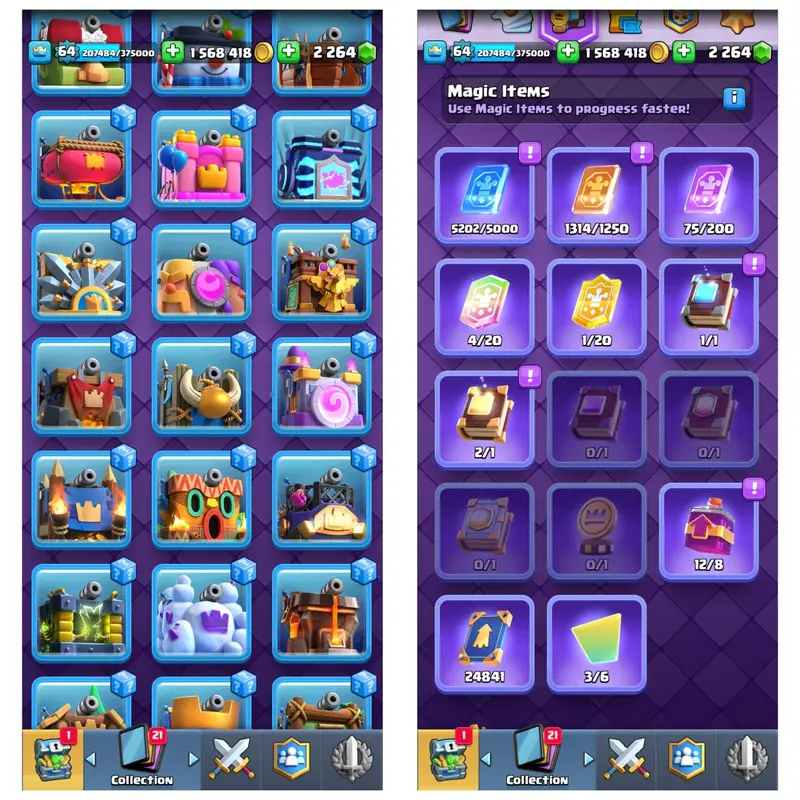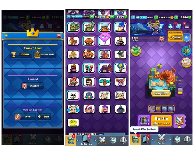 Lvl-64 | 118-Card Max | 48-Elite | 32-Evo | [149-Emote] | 10000 Trophy | Name Chang Free