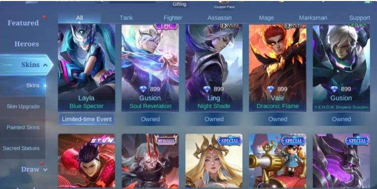 Mlbb Account Skin Epic Gs, Ling, Valir, Gs, Stun Chou 2 Recall Epic Tas tas, Firecrown (G)