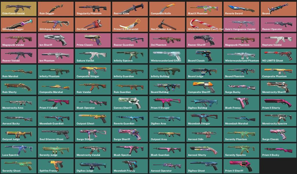 NA -LVL 94-UNRANKED -10 KNIVES -87 SKINS (66,050 VP spent) Elderflame Vandal, Ruin Dagger,Reaver Knife, Reverie Sword, O