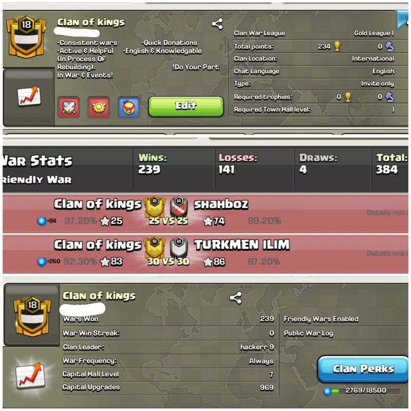 NAME - Clan of kings | LEVEL 18 | GOLD LEAGUE 1 | 239:141 WAR LOG | CLAN CAPITAL 7 | BEST NAME | INSTANT DELIVERY