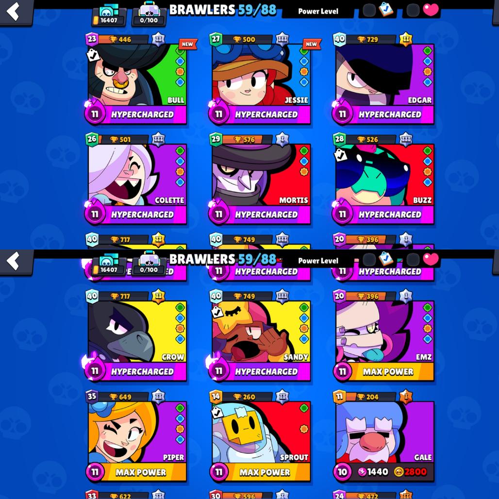 PREMIUM 73 SKIN| [BRAWLERS: 59]| 16K TROPHY| 11 MAX BRAWLER| 8 HYPERCHARGE| NC- POSSIBLE| CHECK PHOTOS