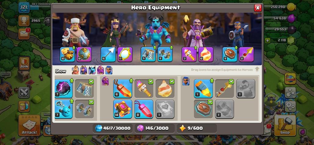 • Level Barbarian King: 43 (1 GOLD 1 LEGENDARY)