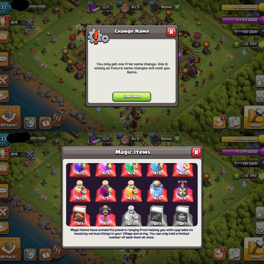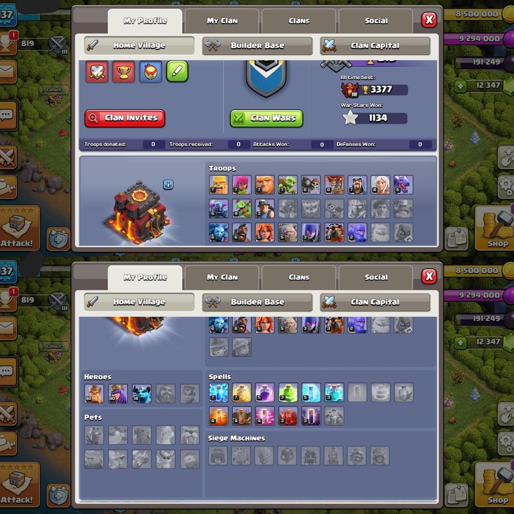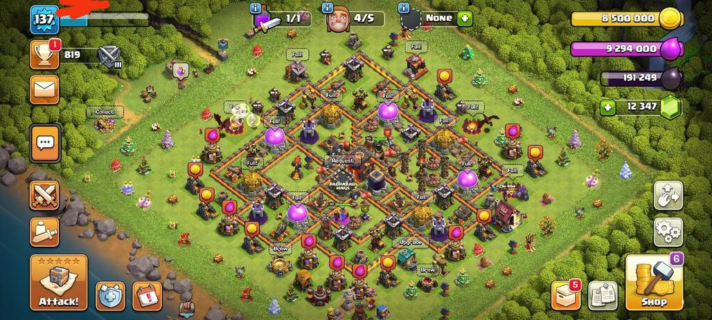 TH10 Max--12.5k gems--Party King,Queen--1100+ warstar--N C Free--Old trees--Medels