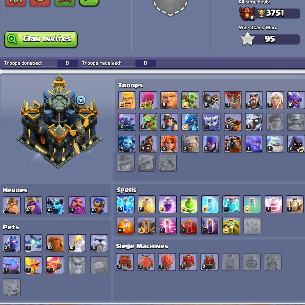 TH17 | DARK BLUE WALLS HERO K-23 AQ-32 MP-41 GW-11 RC-18 | RENAME AVALIABLE | 2 EPIC EQUIPMENT | 690 GEMS | Townhall 17