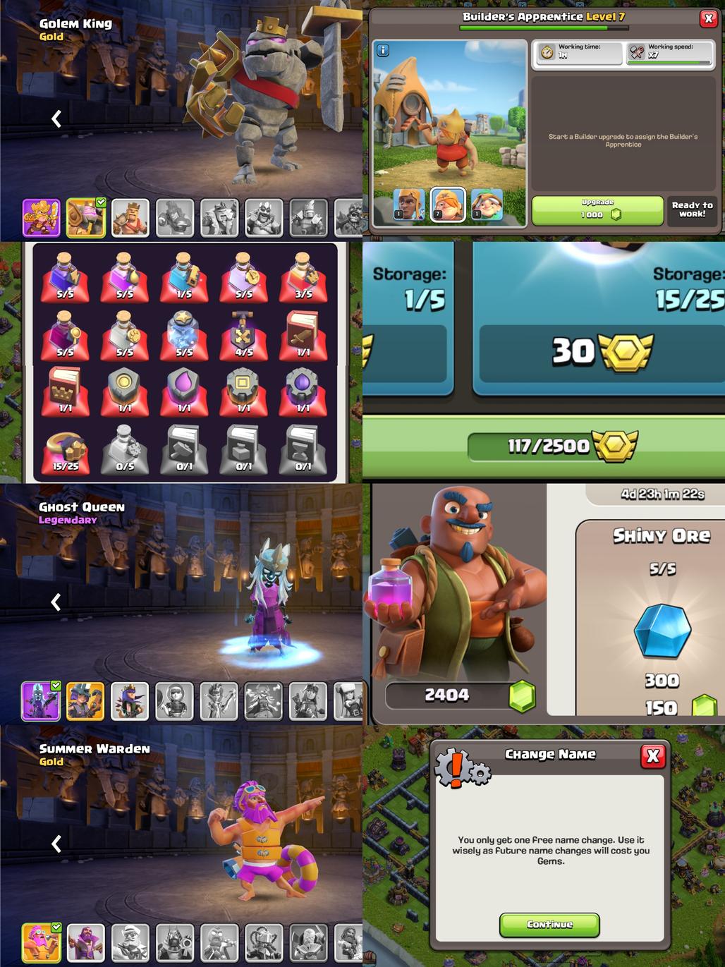 TH17 || DARK BLUE WALLS || PURPLE DEFENSE || 9 EPIC EQUIPMENT || HEROES K-60 AQ-69 MP-42 GW-52 RC-21 || RENAME FREE || 2400 GEMS