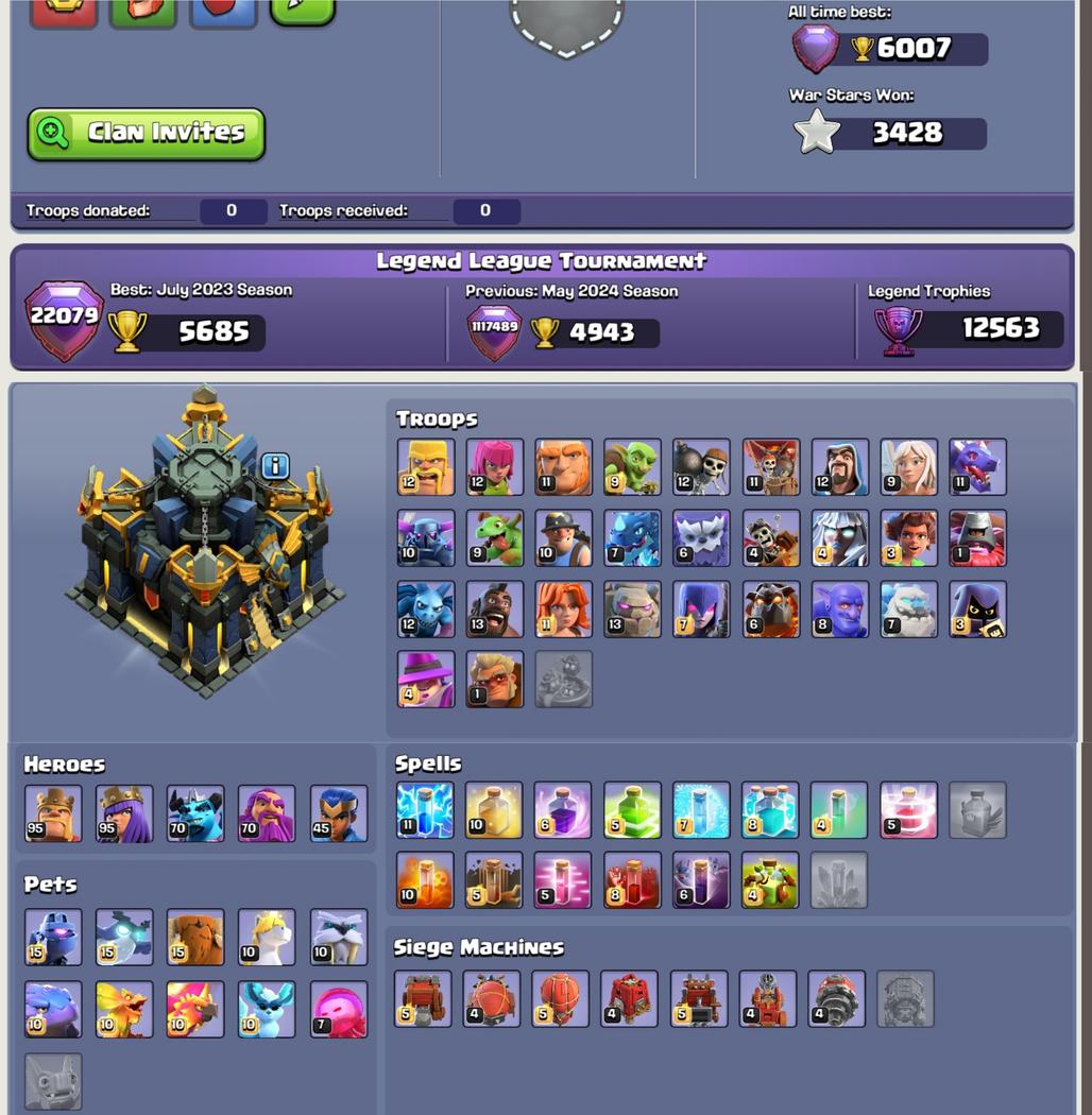 TH17 | SEMI MAX | 7 PETS MAX | HEROES K-95 AQ-95 MP-70 GW-70 RC-45 | 4 EPIC EQUIP ( 1 EPIC MAX ) || 2K RENAME || 1K GEMS