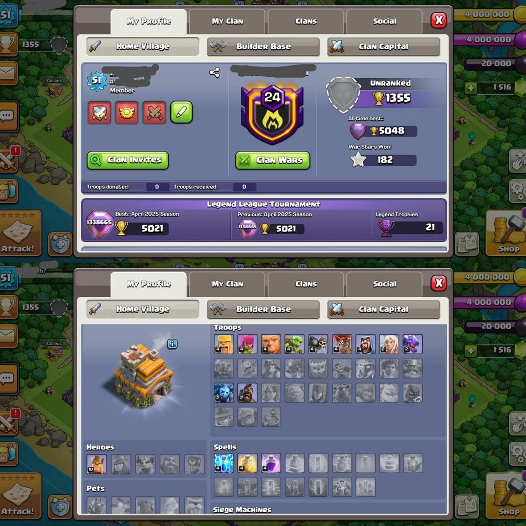 Th7 LEGEND--LEGEND BANNER WITH TROPHY--PB 5048--DARK AGES KING--OBSTACLESS--MAX TH7--NC AVAILABLE