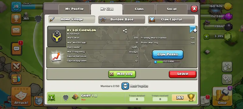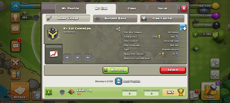 || unranked clan || name Ky LoI CHIENLAN || clan level 8 || instant delivery
