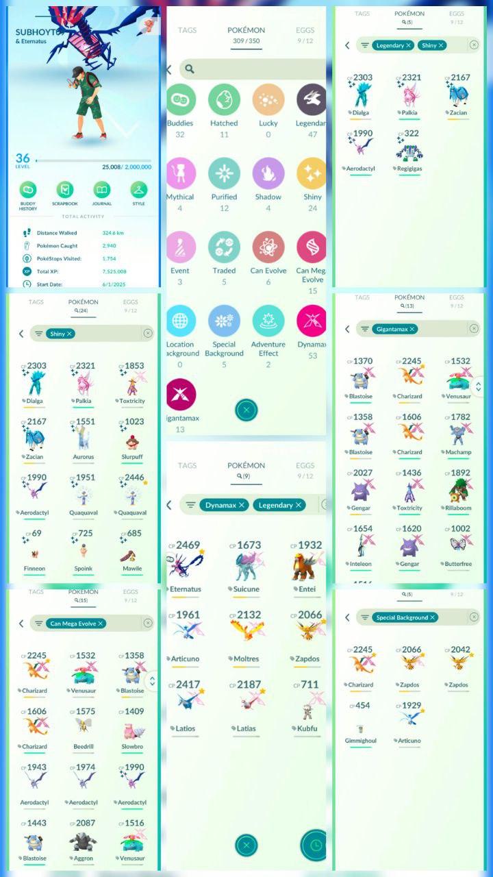 VB41 | Level36 | 47 Legendary | 24 Shiny | 5 Shiny Legend | Shiny Palkia | Shiny Dailga | 12 Gmax | Rare Eternatus | Meg