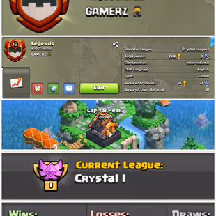 Legends !! Level 16 !! Capital Peak 10 !! Win 101 Loss 117 !! Crystal Leauge 2 !! Best Name !! Cheap !! Fast Delivery