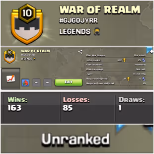 WAR OF REALM !! LEVEL 10 !! UNRANKED !! WIN 163 LOSS 85 !! HIGH WINS !! AFFORDABLE !! INSTANT DELIVERY